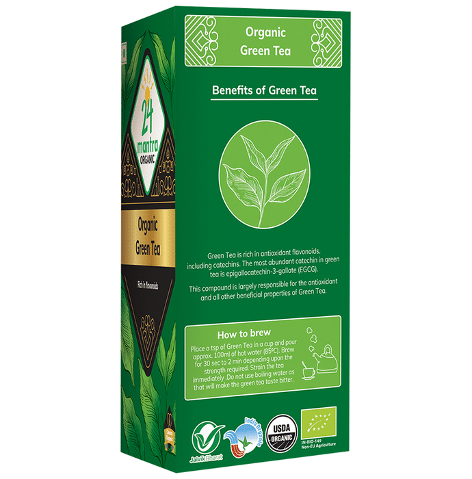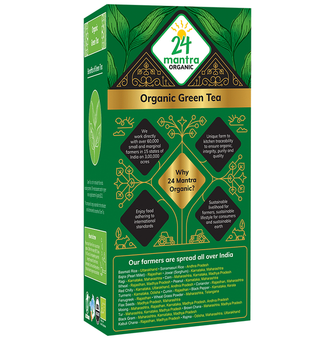 24 Mantra Organic Green Tea is touted to be one of the healthiest beverages on the planet. It’s loaded with antioxidants that have many health benefits which may include: improved brain function protecting against cancer fat loss lowering the risk of heart disease. Green tea can also provide comfort from sore throat and cold.