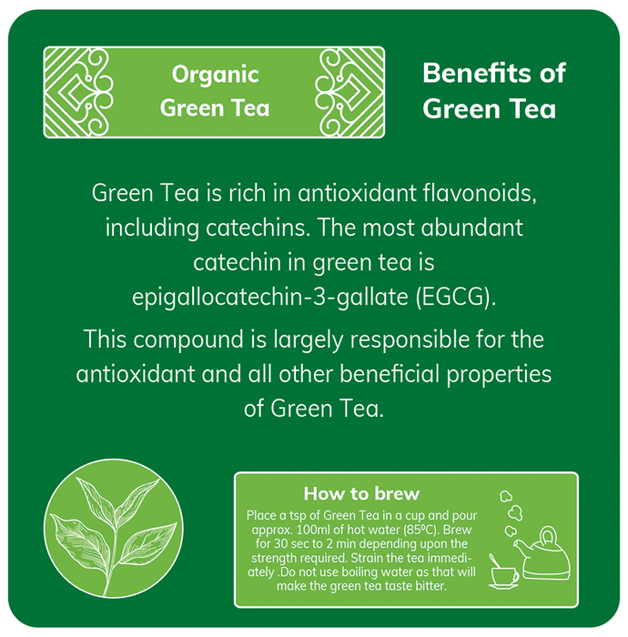 The catechins present in green tea increases metabolism and helps in reducing weight|Contains healthy bioactive compounds that help in the proper development of the body|Green tea helps in the treatment of cold cough and respiratory diseases|Might help alleviate digestive discomfort and reduce inflammation