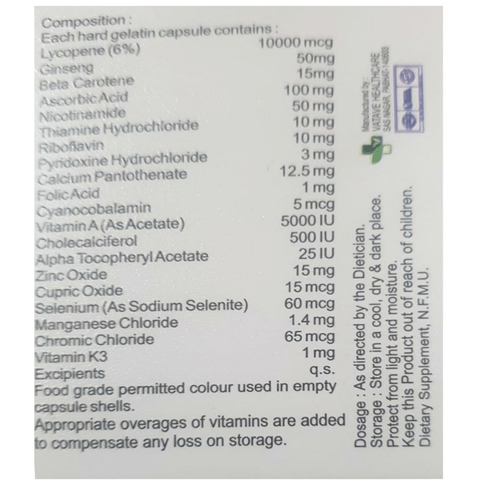 Adzovit Capsule is a dietary supplement formulated with multivitamins multi-minerals ginseng and lycopene that promote overall health and well-being. It has potent antioxidants that help protect the body against free radicals and boost immunity. It helps to fill nutritional gaps enhance energy levels and promote growth and development