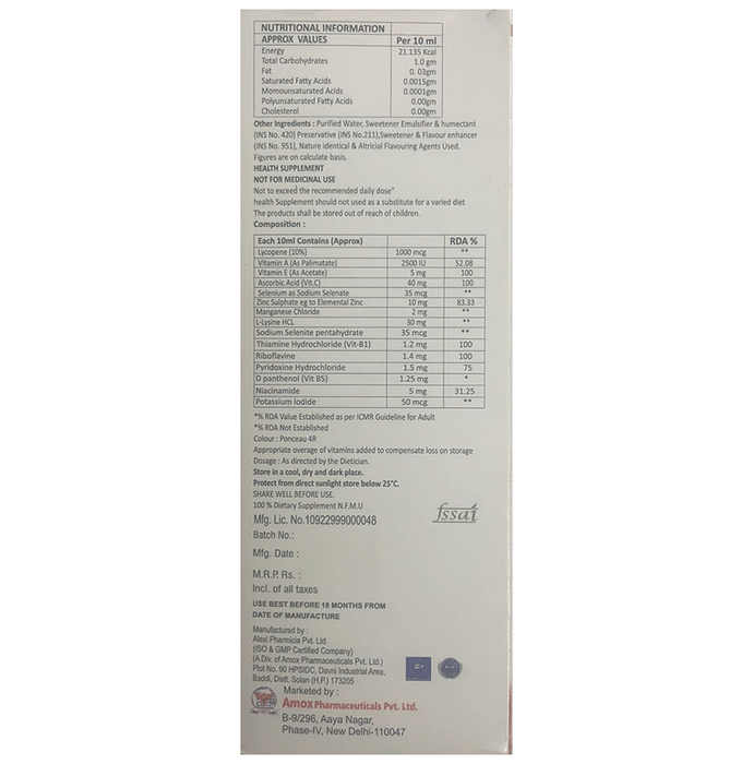 Amoxvit SyrupIt is a dietary supplement formulated with multivitamins multi-minerals and lycopene that promote overall health and well-being. It has potent antioxidants that protect the body against free radicals and boost immunity. It helps to fill nutritional gaps enhance energy levels and promote growth and development.