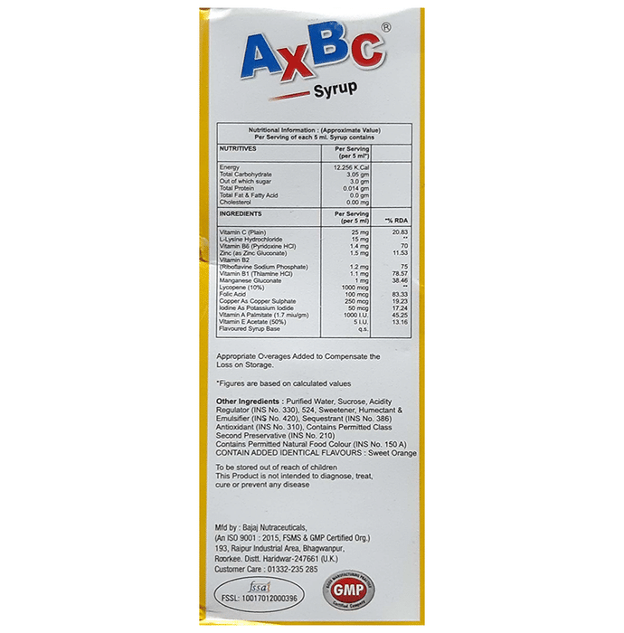Axbc Syrup contains lycopene multivitamins multimineral and l-lysine hydrochloride as the main active ingredients. It is enriched with potent antioxidants that are very helpful in protecting the body from oxidative stress caused by free radicals and help manage nutritional deficiencies.