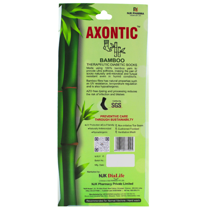 Axontic Bamboo Therapeutic Socks made using bamboo yarn to provide ultra-softness making the pair of socks naturally anti-microbial and fungal resistant even in humid conditions AZQ-free dyeing and processing reduces the risk of infection and blisters Bamboo fibre has natural properties such as UV resistance temperature regulation and is also hypoallergenic.