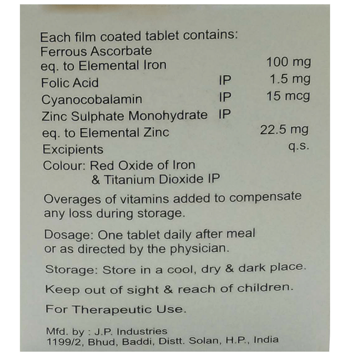 Cyanocobalamin is a Vitamin B12 dietary supplement. It helps the body to make red blood and nerve cells|Folic acid aids in red blood cell and nerve formation|Iron is also a dietary supplement and is used to treat chronic blood loss or poor absorption|Provides adequate nutrition which is a pivot for routine body functions|Improves the immunity of the body|Zinc is essential for normal foetal growth & milk production during pregnancy|</div