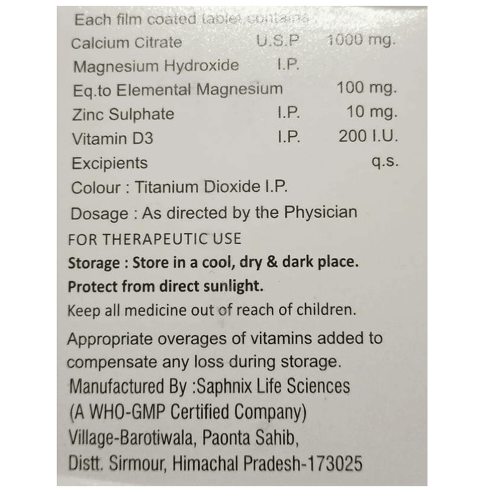 Calcium citrate is a form of calcium that is easily absorbed by the body. It is important for maintaining strong bones and teeth as well as supporting proper muscle and nerve function|Magnesium is an essential mineral that plays a role in over 300 biochemical reactions in the body. It helps maintain normal muscle and nerve function supports a healthy immune system and is involved in bone health|Zinc is a trace mineral that is important for various bodily functions including immune function wound healing and cell division. It also plays a role in supporting normal growth and development|Vitamin D3 is essential for the absorption of calcium and phosphorus which are important for bone health. It also plays a role in immune function and cell growth