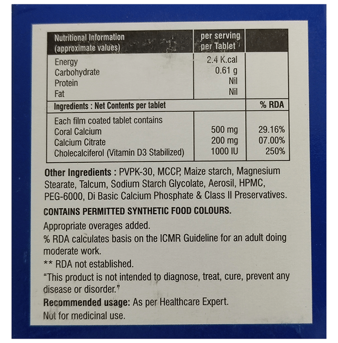 Coral calcium is useful for various bone conditions such as osteoporosis|Calcium plays a crucial role in the development and maintenance of strong bones and teeth and also plays important roles in muscle function and nerve transmission|Vitamin D3 is essential for the absorption of calcium and is important for bone health