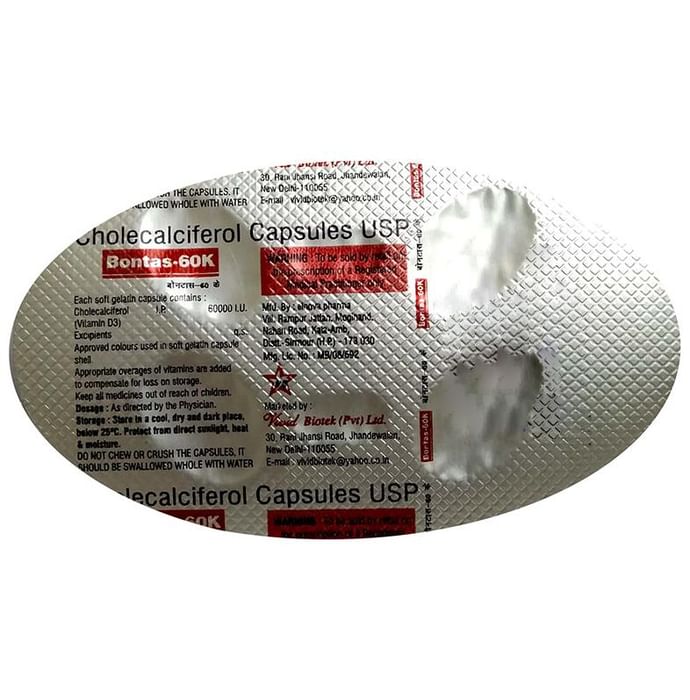 Bontas-60K Capsule is a nutritional multivitamin supplement that helps to promote the overall health. The capsule supplies an adequate amount of vitamins which individually caters to critical functions in the human body.