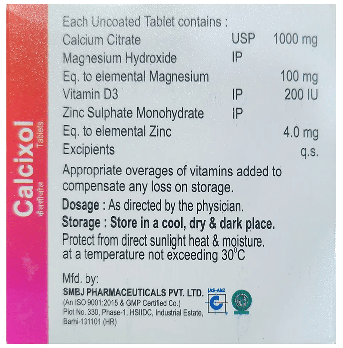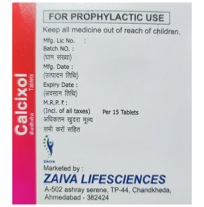 Calcixol Tablet is a dietary supplement which is used as a bone joint supplement to strengthen bones. It also helps to promote nutrition. It promotes the absorption of calcium in the body. It is useful in promoting increased bone mineral density. It supports bone matrix formation and also prevents bone diseases such as osteoporosis fractures rickets etc.