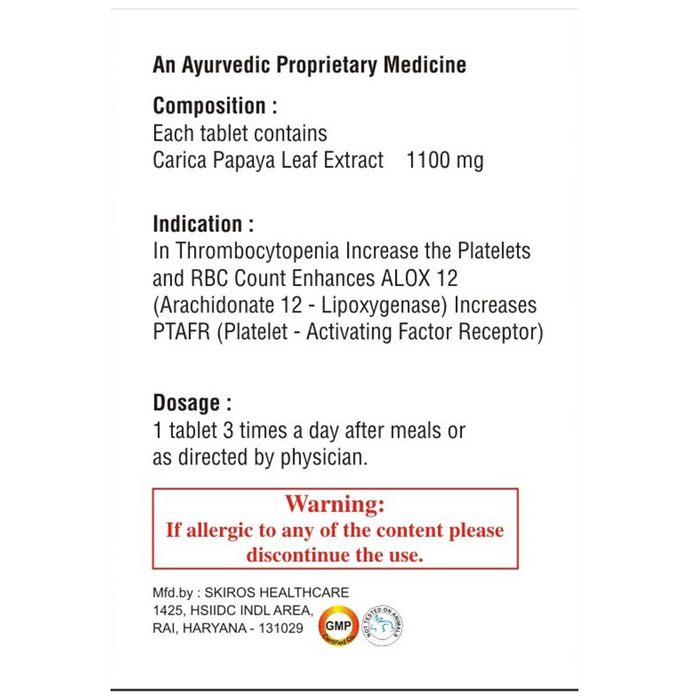 CO 200 Tablet is a combination of carica papaya leaf extract which helps deal with dengue fever and has anti-inflammatory properties.