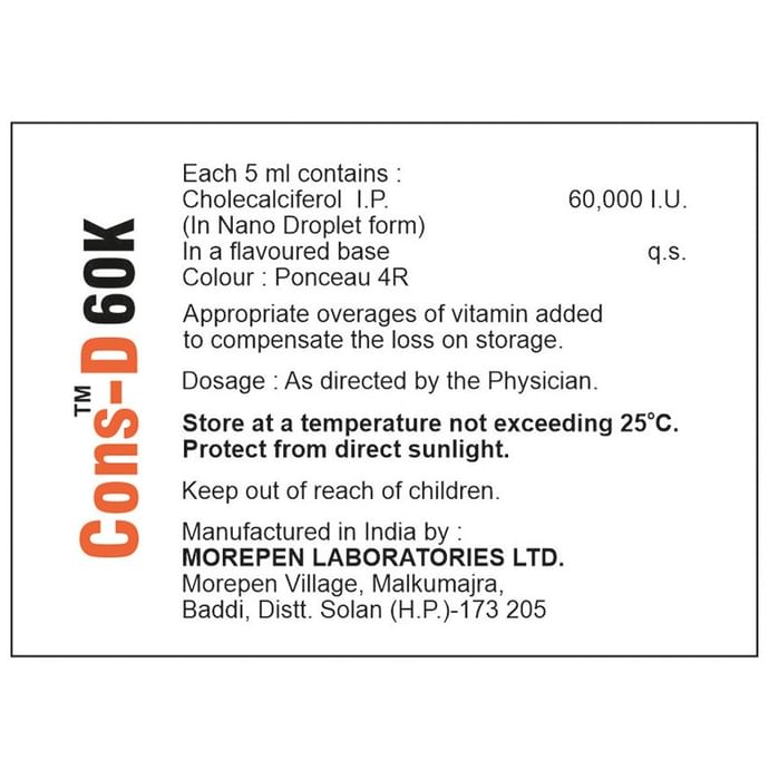 Information about Cons-D 60K Oral Solution (5ml Each) Sugar Free