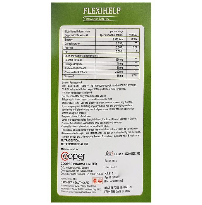 Cooper Flexihelp Chewable Tablet Strawberry can help maintain healthy joints and bones.