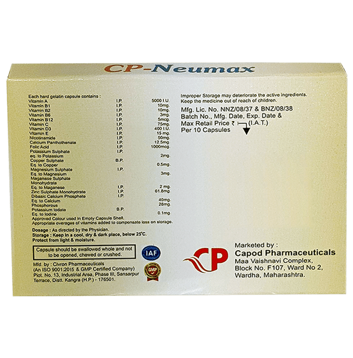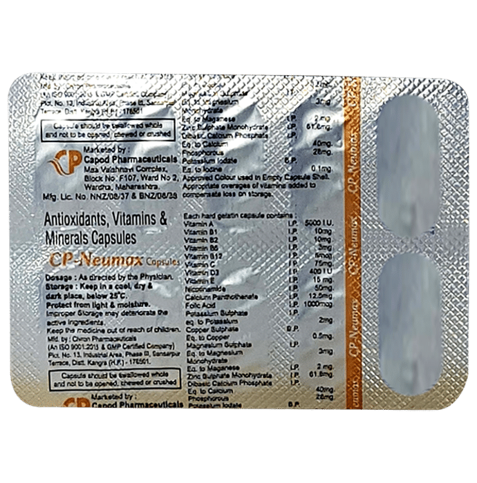 CP-Neumax Capsule plays crucial roles in supporting overall health boosting immunity and protecting the body against oxidative stress. A combination of these essential nutrients in capsule form can provide comprehensive nutritional support.