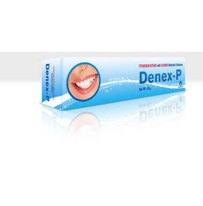 Denex P Gel is a specially formulated medicated desensitising gel toothpaste that effectively fights tooth sensitivity cavities plaque and gum problems. Enriched with Potassium Nitrate it provides comprehensive oral care by strengthening tooth enamel and addressing issues such as natural gum recession abrasion bad breath and susceptibility to decay.