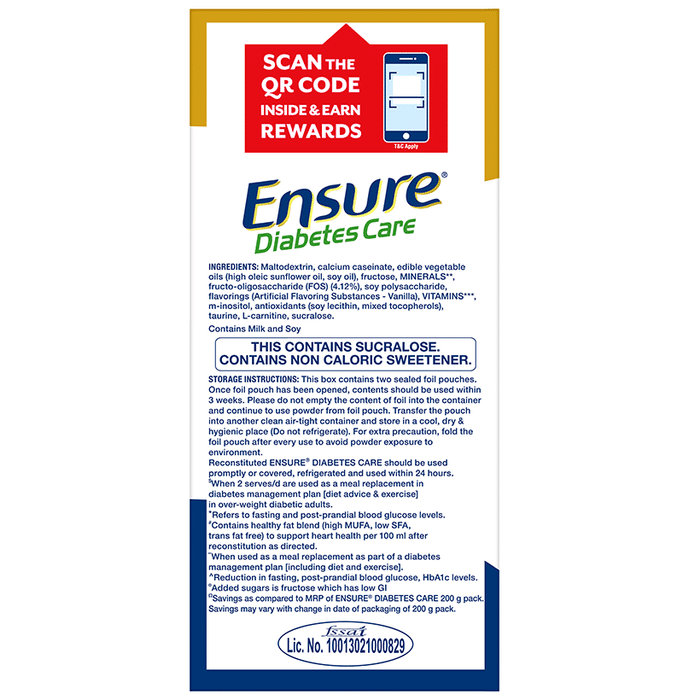 Suitable for lactose intolerance|Not for parenteral (intravenous) use|Not for use in galactosemia|Not intended for use in children unless recommended by a physician or qualified healthcare professional|Not for medicinal use|For Adults|Ensure diabetes care can be consumed without medical advice. Please store the product out of reach of children|</div