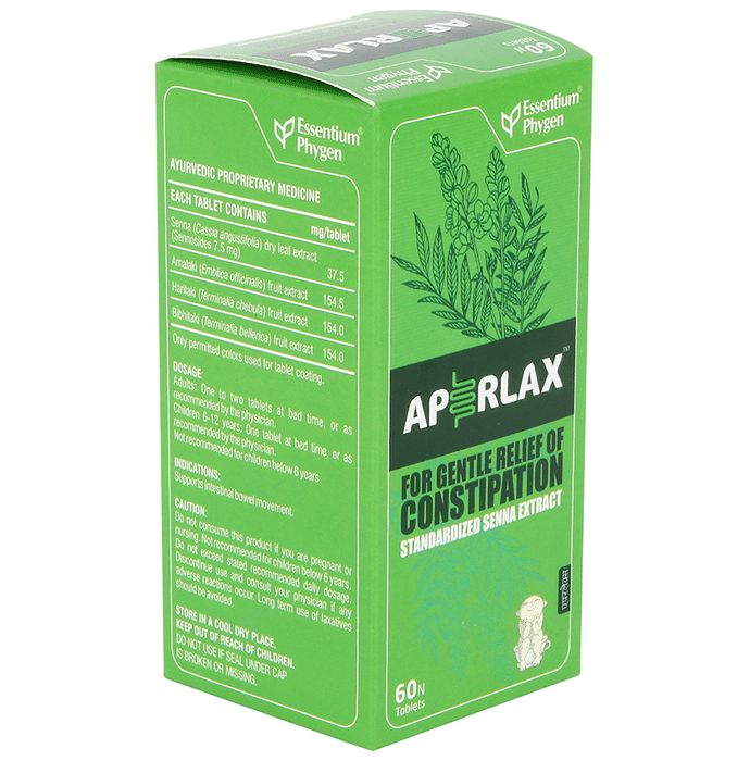 Essentium Phygen Aperlax Tablet is a dietary supplement that assists in managing constipation. It is high in antioxidants and can serve as an anti-inflammatory supplement. It acts as a supplement that can help improve digestion.