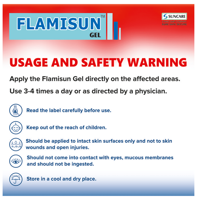 Apply Flamisun Gel directly to the affected areas|Use 3-4 times in a day or as directed by the physician