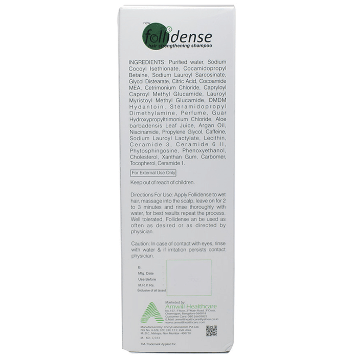 Follidense Shampoo is formulated strengthen the hair and scalp. The ingredients used in the shampoo are helpful in cleansing and conditioning the hair. In addition to this it works as an anti-hair fall treatment.