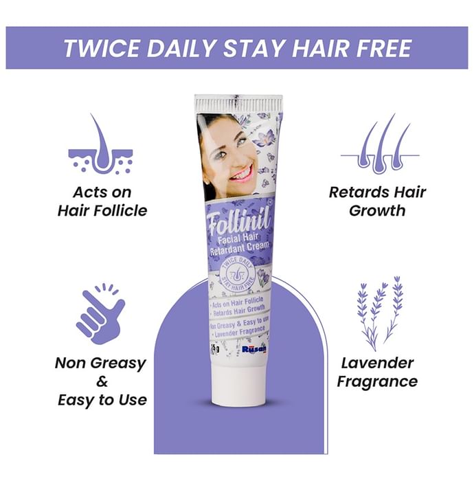 Follinil Facial Hair Retardant Cream is used to treat unwanted hair on the face and neck of women. As a cream it is applied directly to the skin on the face and neck at the site of the unwanted hair. Follinil contains eflornithine Hydrochloride that blocks the action of an enzyme called ornithine decarboxylase which is found within the hair follicles. Blocking this enzyme results in slower hair growth.