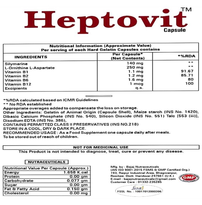Heptovit Capsule aids in the promotion and maintenance of liver health. It helps to improve cognitive functions as well as digestive health. It also helps to improve liver ammonia detoxification.