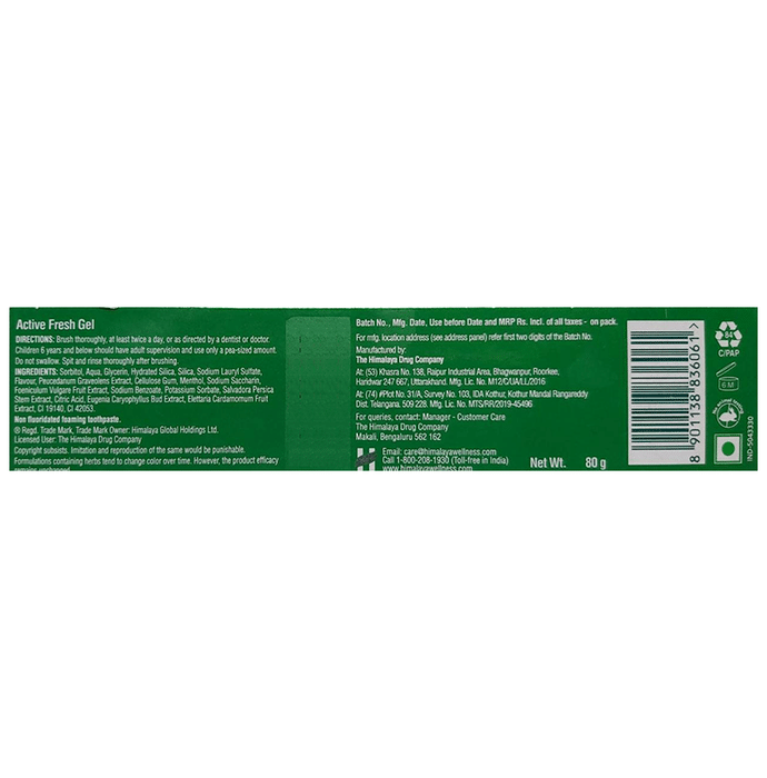 Himalaya Active Fresh Gel Saunf & Mint is packed with refreshing herbal ingredients that ensure long-lasting fresh breath. It has antimicrobial property also a potent astringent that tightens gums. It inhibits the growth of oral microbes leading to healthy gums and fresh breath.