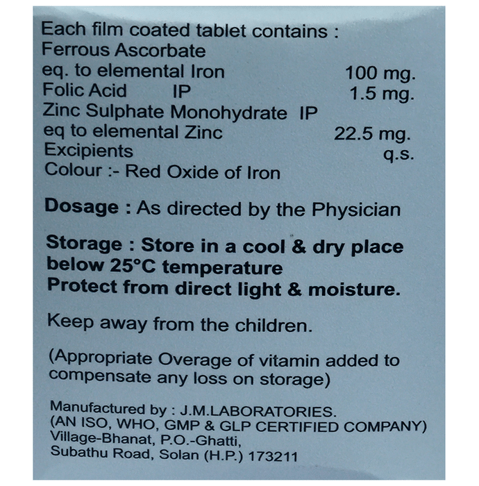Jeffer-XT Tablet is a formulation that helps prevent iron and folic acid deficiency. It helps to prevent anaemia. It may also help enhance energy levels.