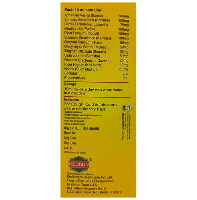 Kasika Syrup is an Ayurvedic formulation that aids in the recovery of a bothersome cough. It reduces internal inflammation soothes the throat and deals with sore throats. The active ingredient in this blend is beneficial for sore throats and chronic bronchitis.