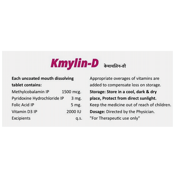 Kmylin-D Tablet Delicious Mango is a nutraceutical tablet formulation fortified with antioxidant and neuroprotective properties. It protects the body from free radical damage and maintains the overall well-being of the body. It is very beneficial in managing the concerns associated with diabetic neuropathy.