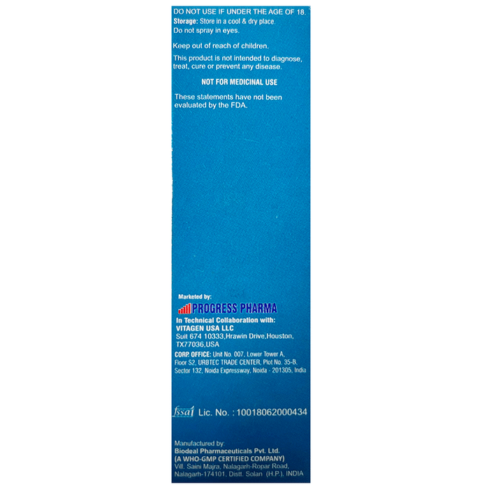 Shake well before use|Do not spray on eyes|Do not use continuously For more than 2 months|Do not exceed the stated recommended daily usage|Do not operate machinery or a vehicle within 5 hours of use|Store it in a cool and dry place|Keep it away from the reach of the children