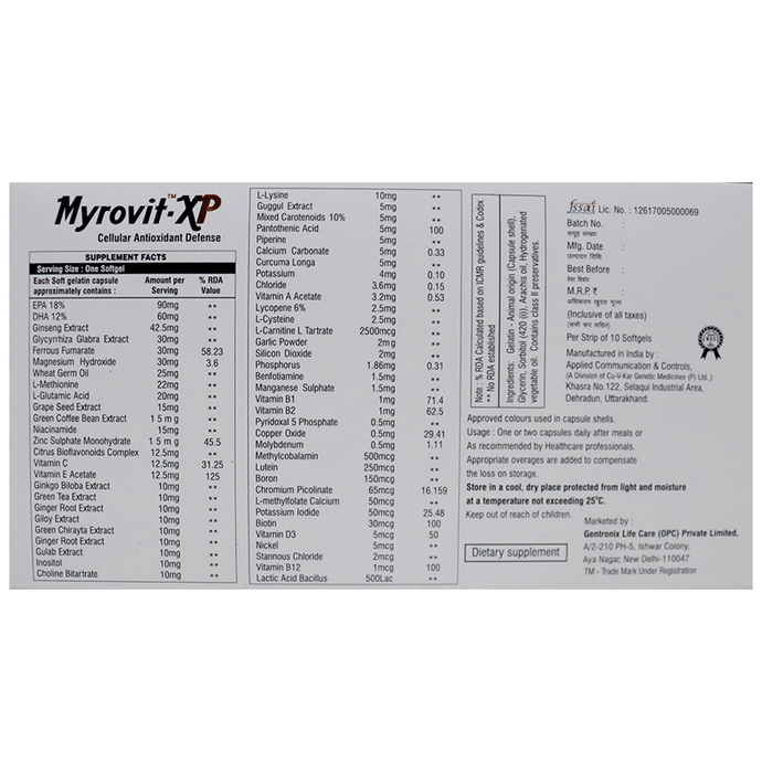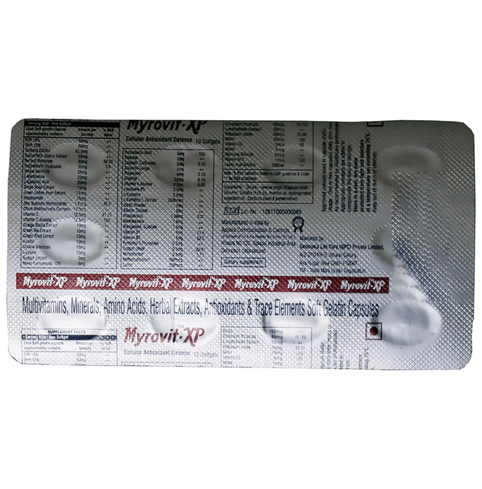 Myrovit-XP Soft Gelatin Capsule is a potent formula that includes the goodness of ginseng grape seed extract ginkgo biloba garlic and other potent ingredients. This formula is rich in antioxidants and prevents oxidative damage.