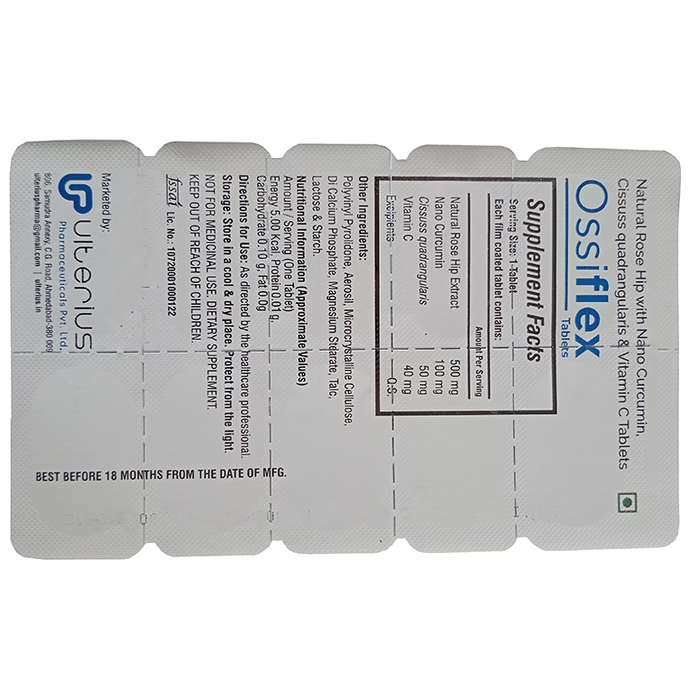 Ossiflex Tablet is a supplement for people in need of vitamin C. It helps in boosting immunity and metabolism in the body. It may reduce uric acid levels in the blood and prevent pain caused by gout attacks.