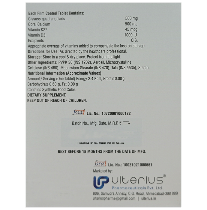 This tablet can help regulate calcium levels in the body|It may help in the proper absorption of calcium and other nutrients|It can support bone teeth and joint health|This tablet can help enhance the mobility of joints