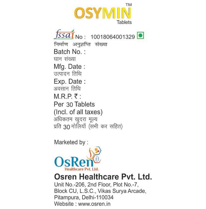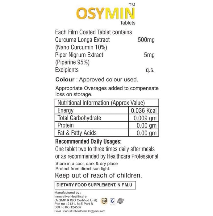 Information about Osymin Nano-Curcumin with Piperine Tablet