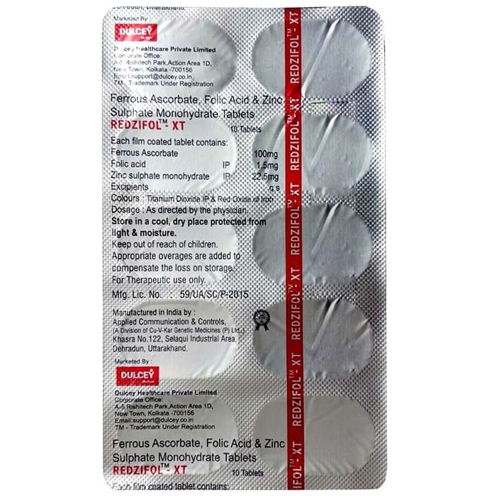 Redzifol-XT Tablet is a dietary supplement that improves vitamin and iron deficiency. It is a vital supplement with folic acid which helps manage your neurological health. The tablets can help stimulate the formation of healthy red blood and keep you active. It assists in boosting your immunity.