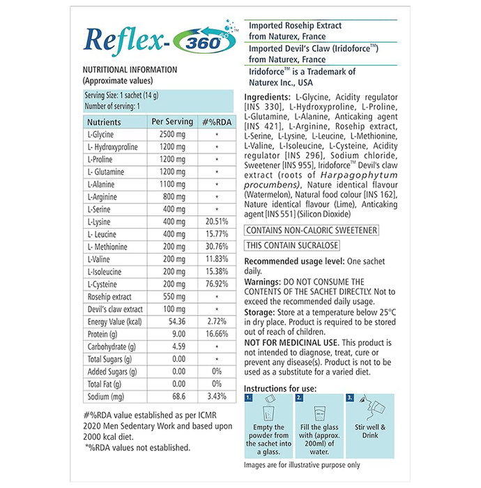 Reflex 360 Sachet Delicious Watermelon is a unique dietary supplement designed to provide a refreshing watermelon flavor while offering a blend of beneficial ingredients sourced from nature.