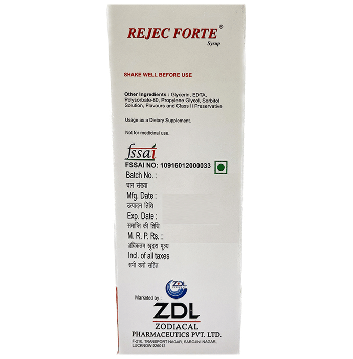 Rejec Forte Syrup Sugar-FreeIt is a dietary supplement formulated with multivitamins multi-minerals and lycopene that promote overall health and well-being. It has potent antioxidants that protect the body against free radicals and boost immunity. It helps to fill nutritional gaps enhance energy levels and promote growth and development.