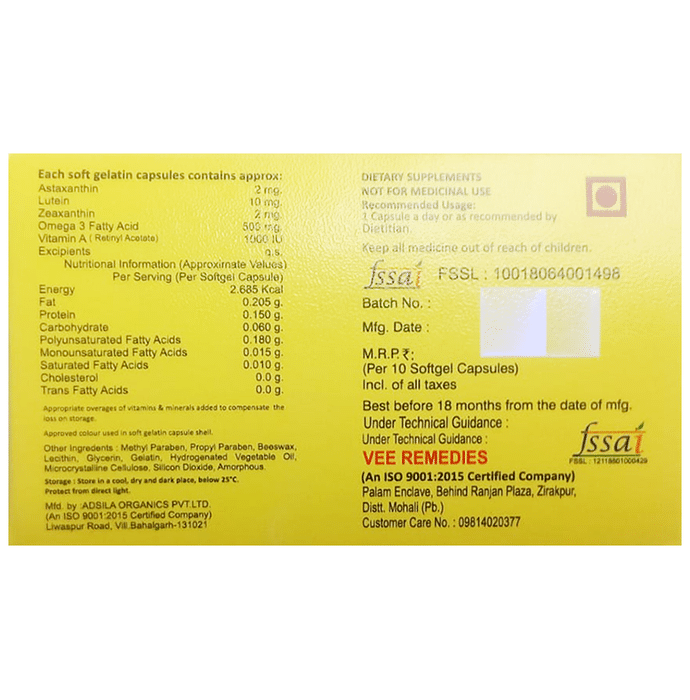 Remac-Plus Capsule is an eye supplement that helps improve eyesight conditions associated with sunlight damage like cataracts and AMD|The supplement also aids in relieving symptoms of dry eye syndrome and contains Omega-3 fatty acids for maintaining good health|It is beneficial for the heart's health and cognitive function|Taking Remac-Plus Capsule regularly can help improve overall eye health and promote well-being