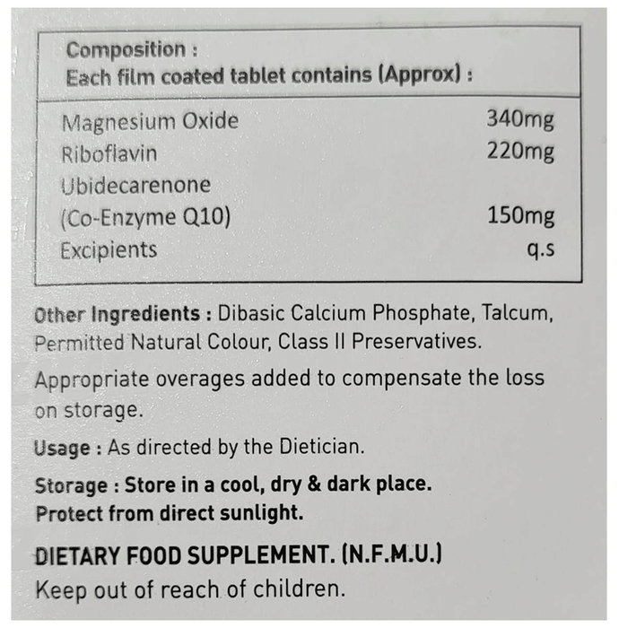The tablets help to restore optimal levels of energy production and prevent fatigue|They help to support the health of the brain and soothe inflammation|Riboflavin has antioxidant properties that help to reduce oxidative damage|The formulation helps to improve heart function and health|Coenzyme Q10 enhances physical performance and endurance