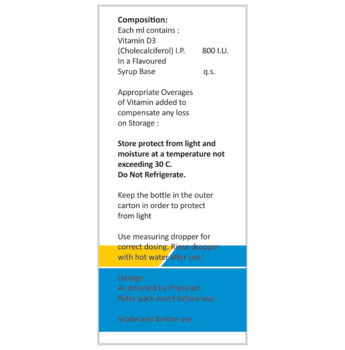 SG D3 Oral Drops contains the goodness of cholecalciferol. It helps the body to have healthy bones muscles and nerves and to support the immune system. It works by helping the body to use more of the calcium found in foods or supplements. This formula enhances the absorption of calcium in a faster and easier manner. Vitamin D3 combats bone degeneration and also improves the immune functions of the body.