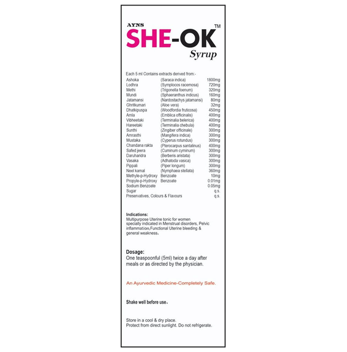 She-Ok Tonic is a herbal uterine tonic beneficial for menstrual irregularities and uterine conditions. It contains a blend of potent herbs and does not cause any side effects.