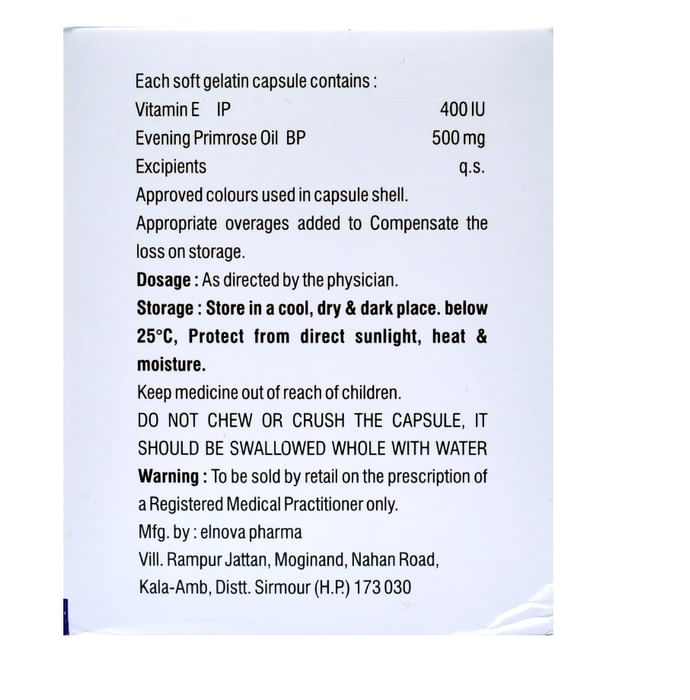 Sheprime Soft Gelatin Capsule contains the benefits of vitamin E and evening primrose oil. It helps support the wellness of the skin. Vitamin E is a powerful antioxidant that helps protect cells from damage caused by free radicals which are unstable molecules that can lead to chronic diseases and premature ageing. It is often used to improve skin health and reduce the signs of ageing as it can help protect the skin from UV damage and promote overall skin hydration.