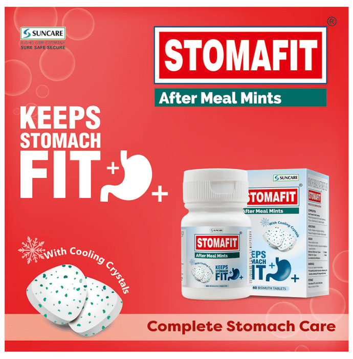 Stomafit After Meal Mints Tablet is a powerful and reliable product for the management and prevention of various gastric troubles. It has proven to be extremely effective in cases of acidity heartburn belching indigestion constipation diarrhoea nausea and similar other troubles related to our stomach. It is extremely easy to consume has an amazing minty flavour and can be used on the go. Stomafit has an unbeatable track record of 25 years in the stomach care market.Stomafit Mints are the perfect on-the-go stomach-care solution. Along with preventing indigestion and acidity stomafit mints keep your breath minty fresh.