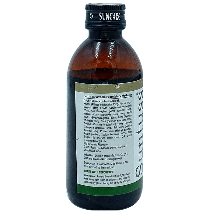 Suntuss Herbal Cough Syrup helps to relieve cough cold inflammation stomach ulcer and digestive disorders. It is made from natural herbs that help to boost immunity and maintain the body's overall health