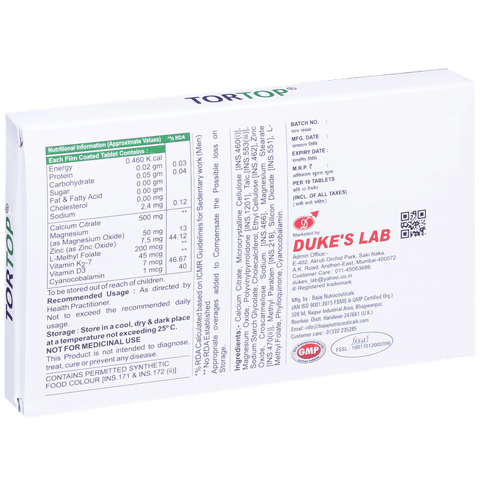 Tor Top Tablet is a nutritional supplement that is used to prevent as well as treat low blood calcium levels in people. It fulfills the deficiency of calcium in the people who do not get a sufficient amount in their diets. The capsule is prescribed to treat serious medical conditions. It is used for the treatment of disorders caused by low calcium levels such as Osteoporosis osteomalacia/rickets hypoparathyroidism and latent tetany. It is also very useful for women who are pregnant nursing or postmenopausal and people on medications such as phenytoin phenobarbital or prednisone.