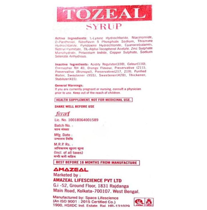 Tozeal Sugar Free Juicy Orange Syrup is a nutritional supplement with a delicious tangy orange flavour that helps boost immunity and promote the body's overall well-being. It helps to protect cells from free radicals pollutants and toxins. It improves the health and general well-being of the body