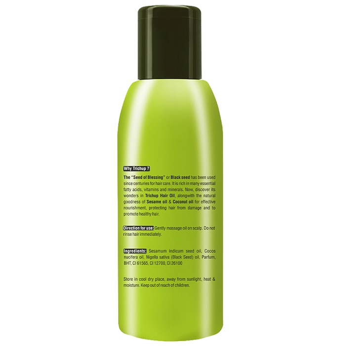 Trichup Black Seed Hair Oil is rich in many essential fatty acids vitamins and minerals. One of the more popular uses of the black seed oil is for hair restoration and promoting overall hair health. It contains omega 3 6 and 9 which have been shown to improve hair follicle production and strength. The black seed oil has also proven to be useful as a natural remedy for premature grey hair. Now discover its wonders in Trichup Hair Oil along with the natural goodness of Sesame and Coconut oil for effective nourishment protecting hair from damage and promoting healthy hair.