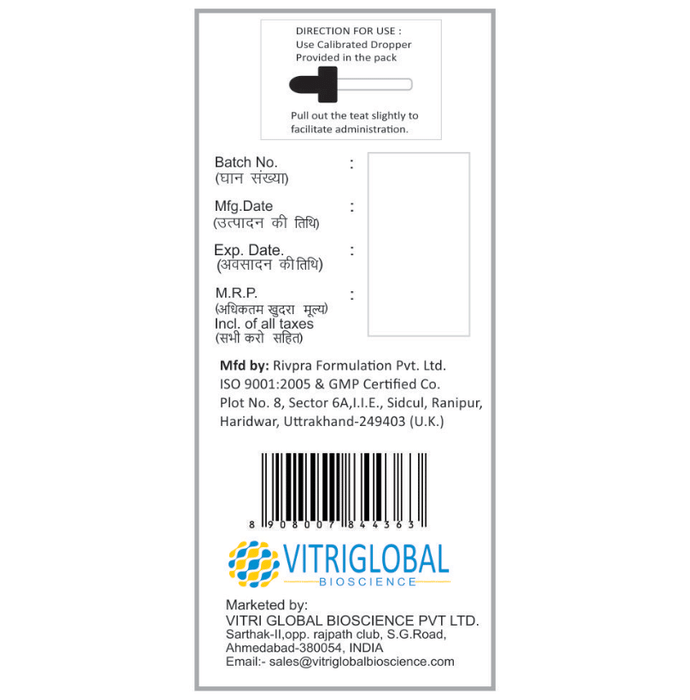 Trivit M Oral Drops is a multivitamin and multimineral formula for kids. It contains the goodness of beta-carotene alpha-tocopherol acetate cholecalciferol biotin pyridoxine HCL niacinamide and many more potent ingredients. This formula promotes overall health nutrition vitality and immunity of the body. Cholecalciferol helps strengthen the bones and joints and promotes the absorption of calcium into the body. Alpha-tocopherol acetate helps maintain healthy skin and eyes and strengthens the body's natural defence against illness and infection.