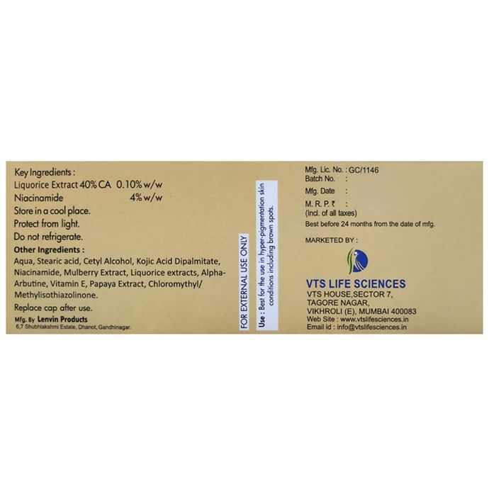 It is a skin brightening cream that is remedial for lightening dark spots and age spots|Helps combat hyperpigmentation of the skin|Reduces erythema and age spots