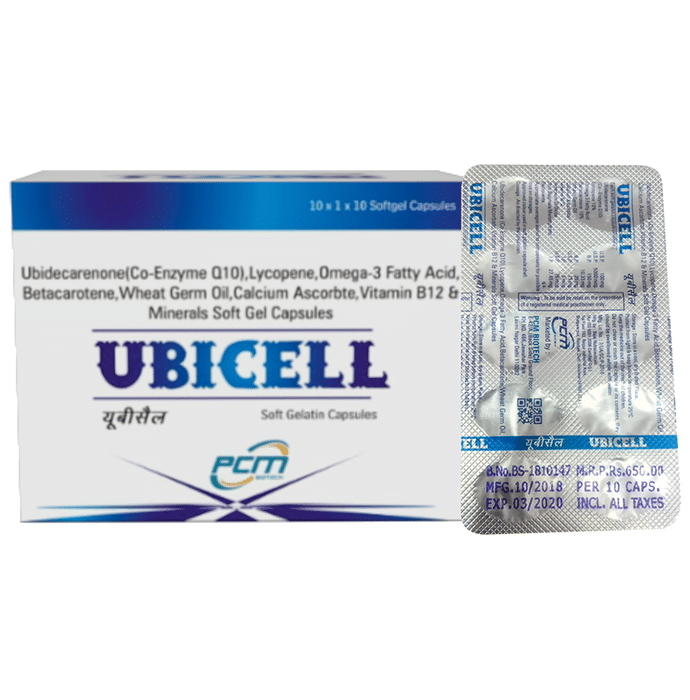 Ubicell Soft Gelatin Capsule is a nutritional supplement that contains high-absorption form of CoQ10 available ubidecarenone. Coenzyme Q10 helps the body’s cells in energy production and has antioxidant properties that protect the body’s cells from damage caused by oxidative stress and free radicals. It has a high absorption rate and is 100% natural.