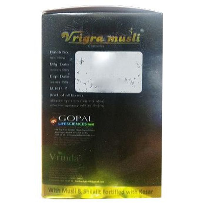 Vrinda Amrit Vrigra Musli CapsuleIt is a natural supplement formulated with musli shilajit and kesar that helps improve strength and stamina. It can help improve your sexual health and wellness in men.