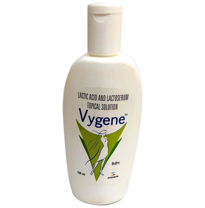 Vygene Solution is an intimate wash used for external cleansing. It helps to restore the natural pH which helps maintain normal health of the intimate region. It contains lactic acid and lactoserum as active ingredients. The combination of lactic acid and lactoserum offers an acidic pH balance in the intimate area and helps manage the growth of harmful bacteria contributing to enhancing its natural defence.