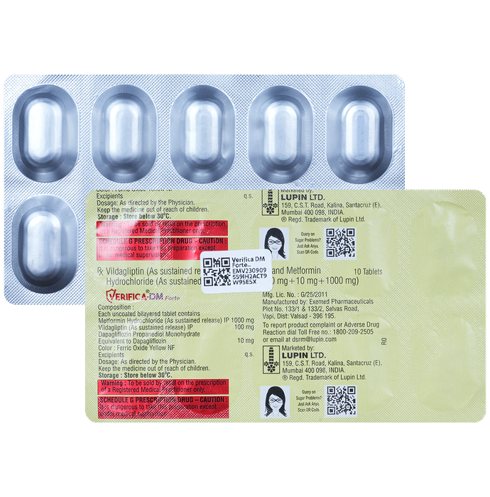 Salt Composition Dapagliflozin (10mg) + Metformin (1000mg) + Vildagliptin (100mg)